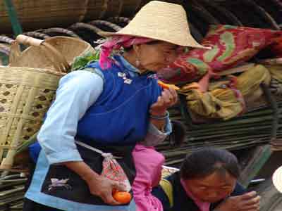 The locals picking oranges for the week and spitting them at each other... did we mention they spit a lot in China!
