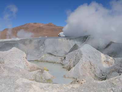 Its the difference between the frozen earth and the 85 degree hot water that blasts steam out of the geysers some 10-15 metres high.