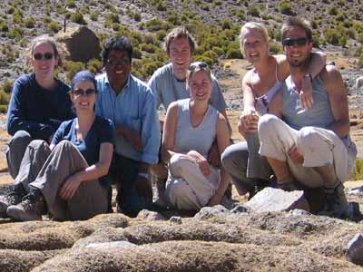 From Left to Right: Louise (Scotland), Emma (Aus), Anastasia (Bolivia - not the missing Russian heir), Russell and Hannah (UK), and us two.