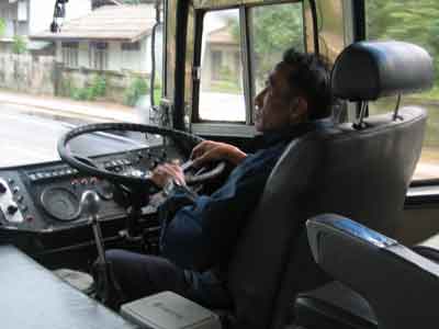 This is our bus driver who was so small we weren't sure that he could reach the pedals.