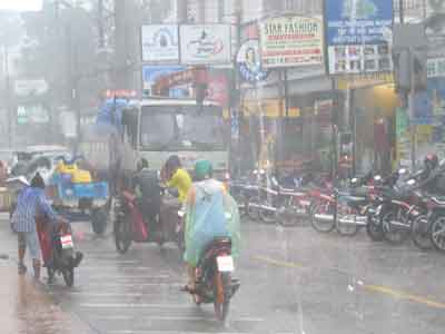 We arrived at Phuket and stood in a doorway for half an hour because it was raining so hard.